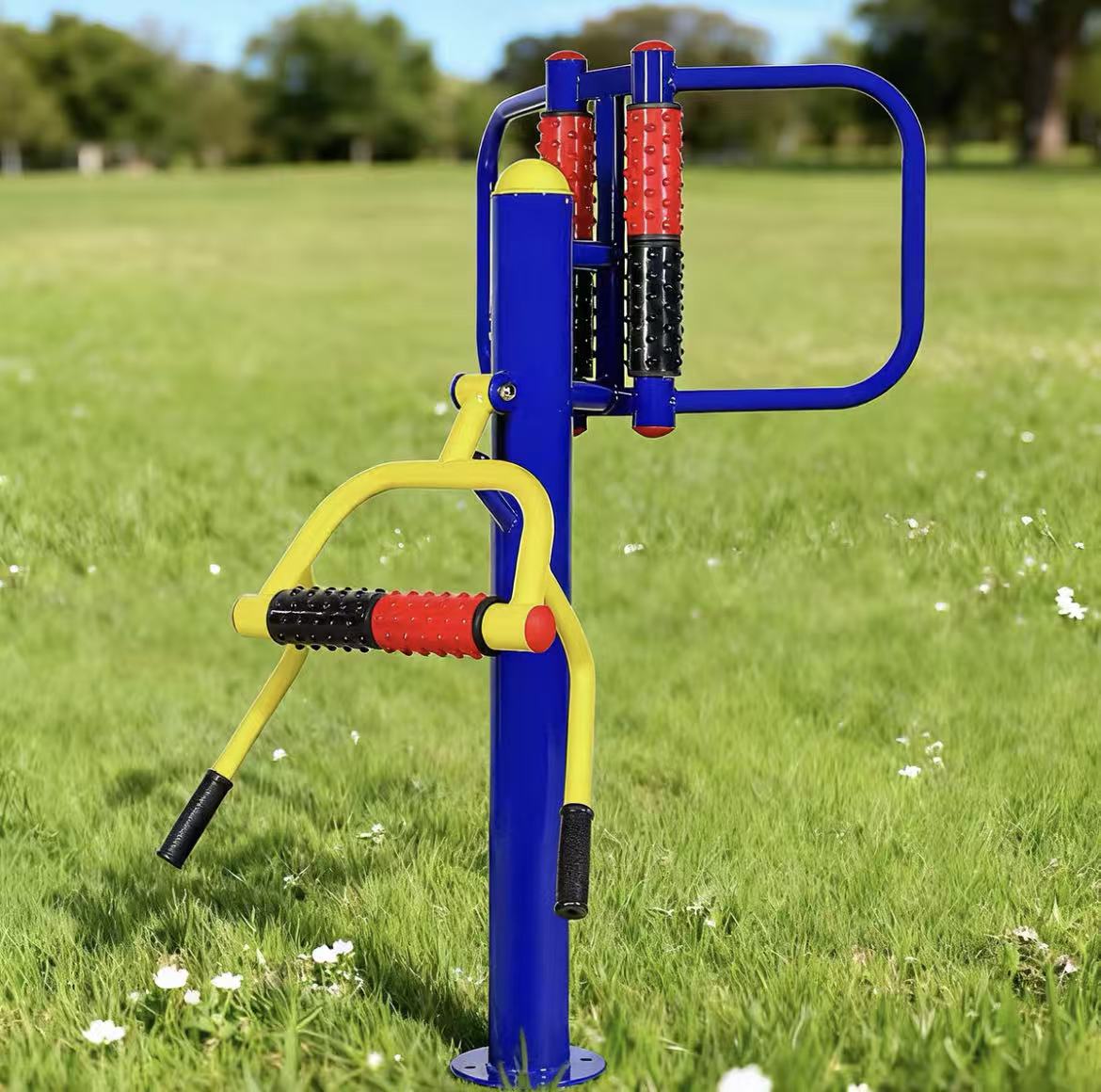 The product is manufactured with high-quality steel, anti-rust coatings, and weather-resistant materials, ensuring exceptional durability even in harsh outdoor environments. The structure features rigorous craftsmanship, precise welding, and stable mechanical performance. The entire frame is designed to handle long-term, repeated use while maintaining excellent stability and safety. Non-slip footplates and ergonomic handles ensure safe and comfortable workouts.